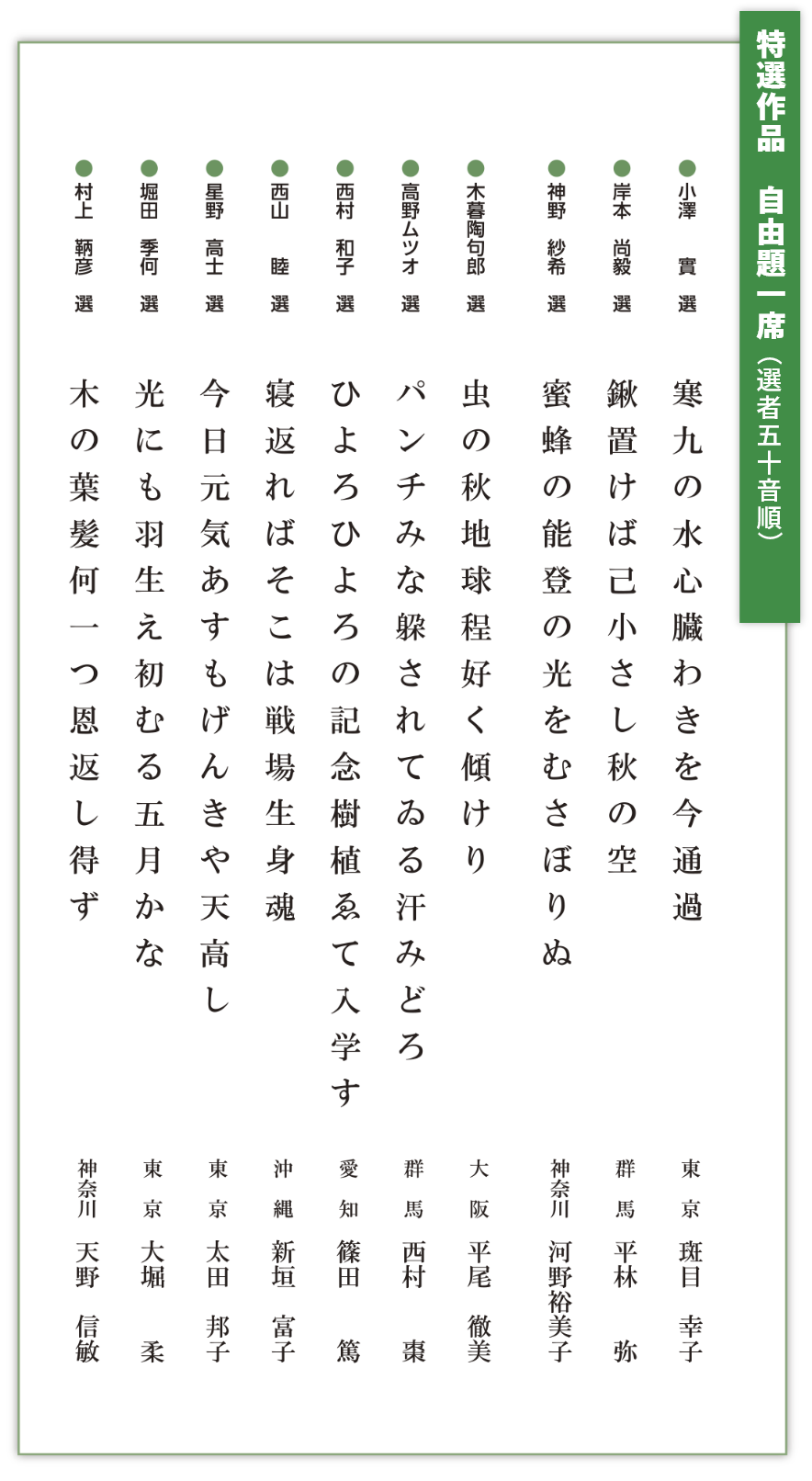 自由題・題詠 選者