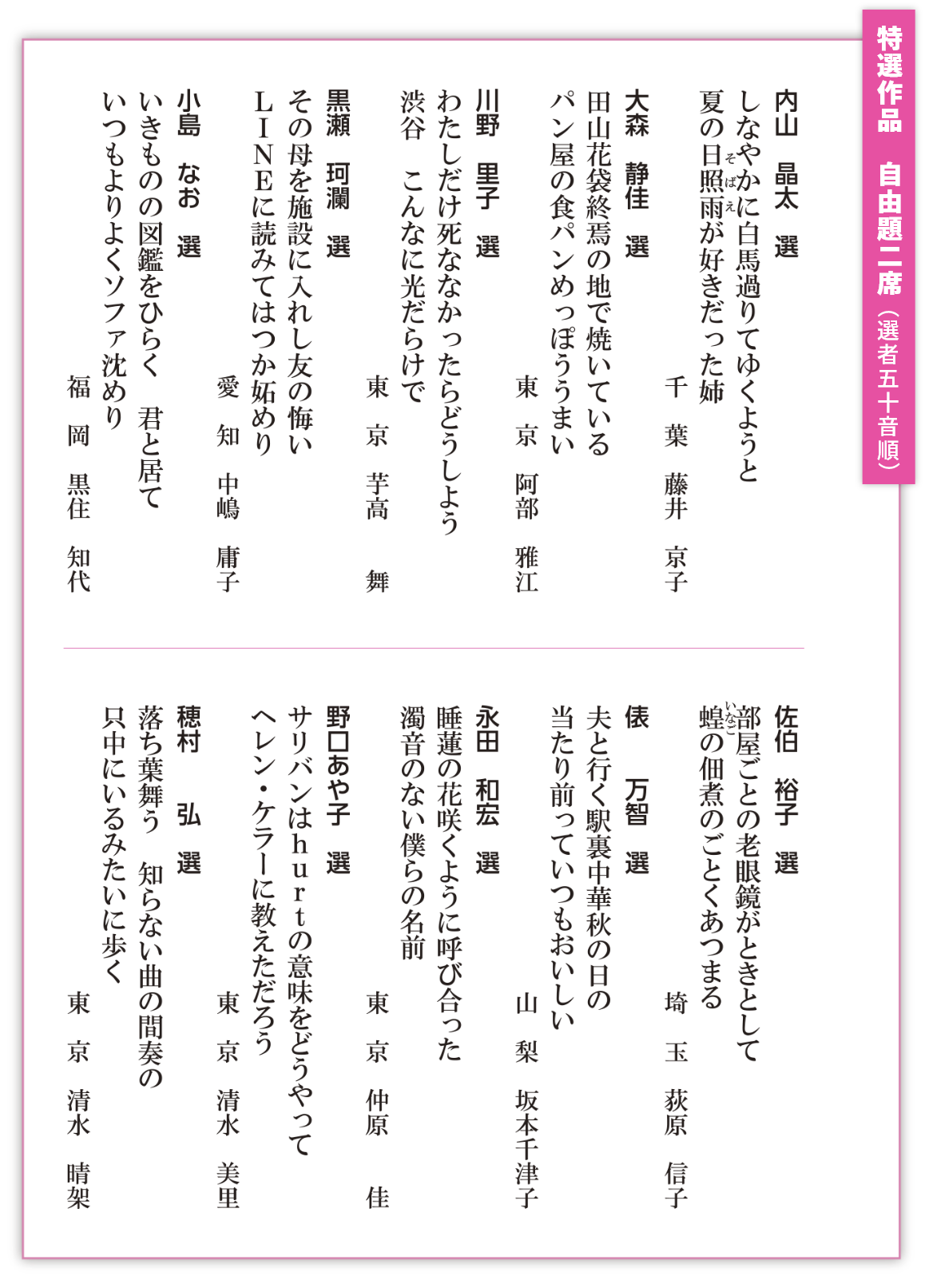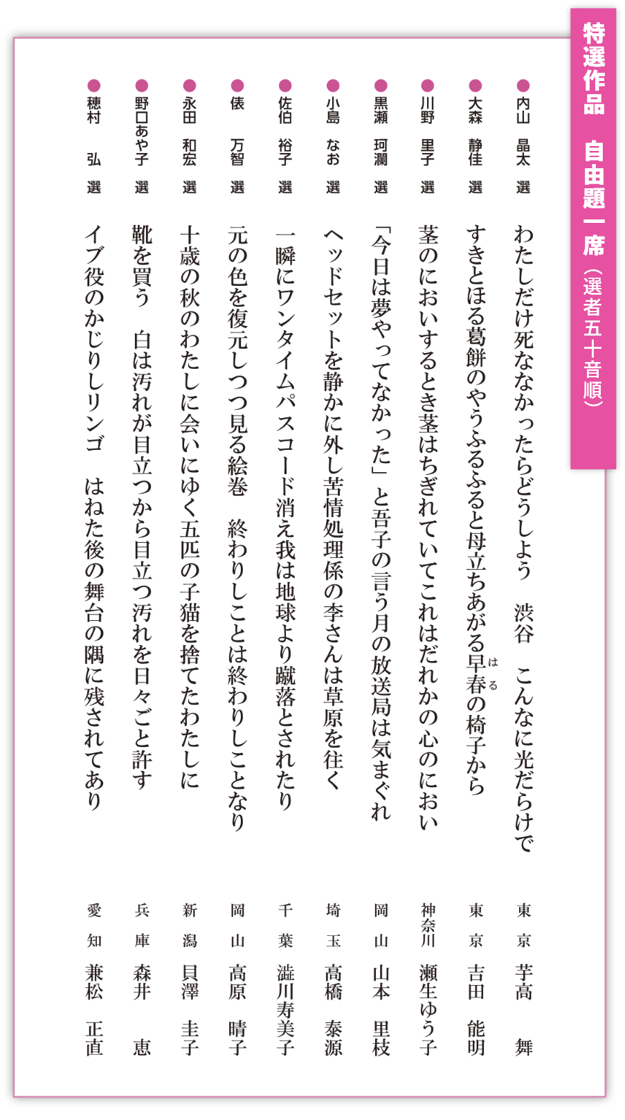 自由題・題詠 選者