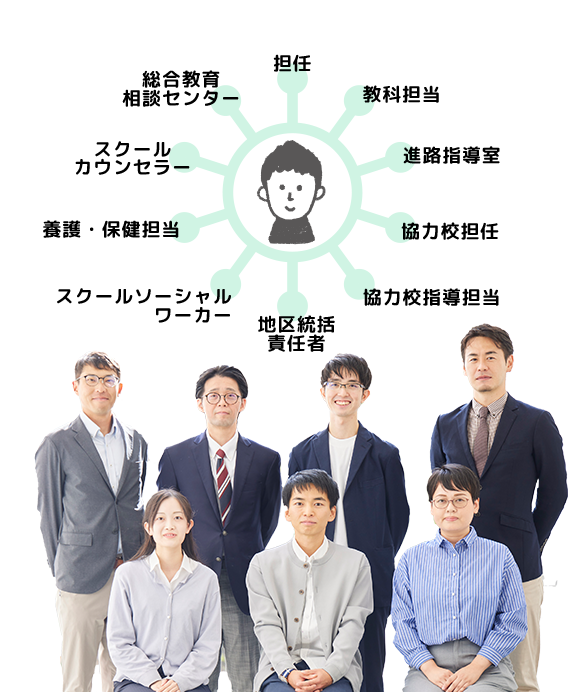 クラス担任を中心に、各教科担当、地域の指導担当が一体となってサポートします。